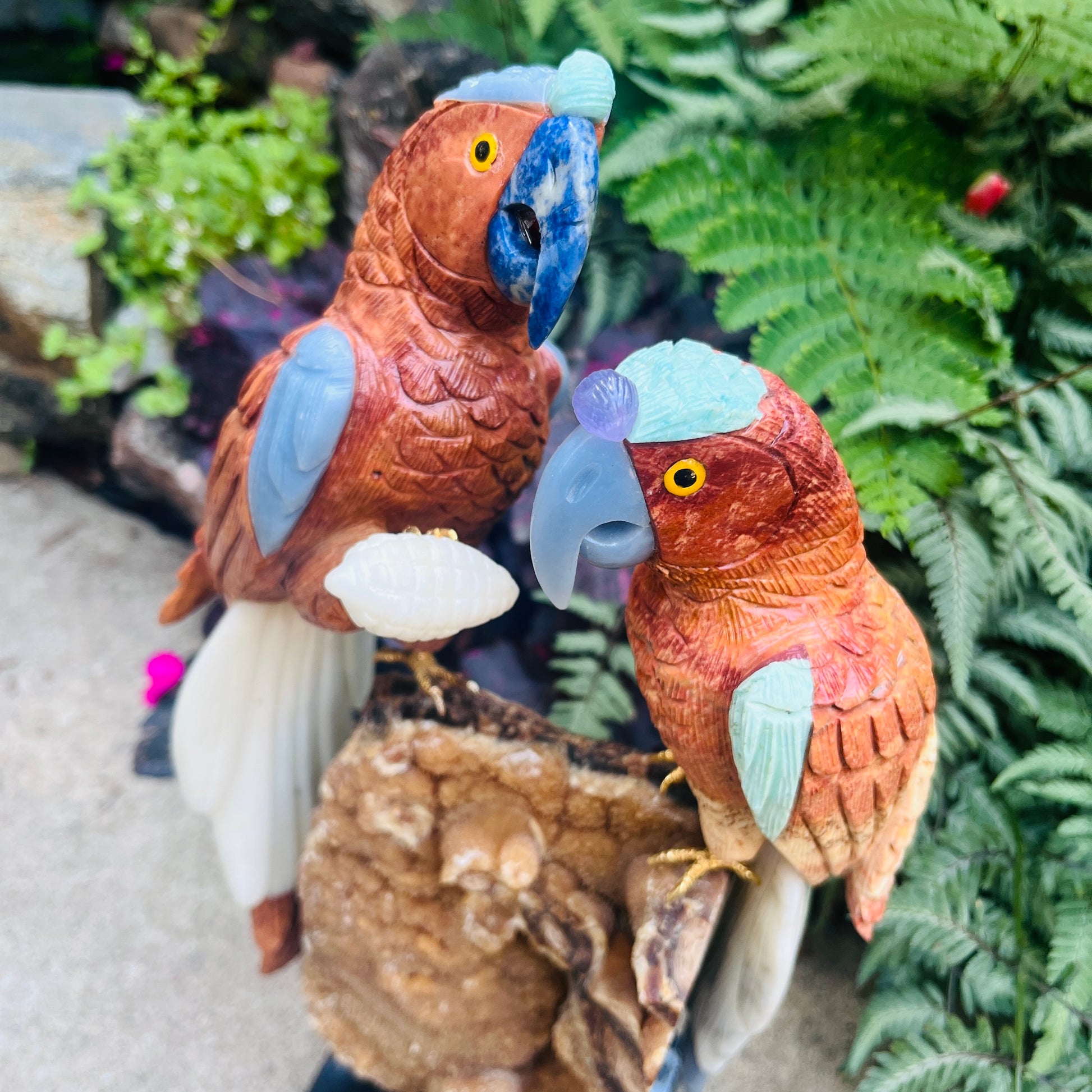 Bring the beauty of nature into your home with this handcrafted Gemstone Parrots sculpture. Carefully carved from genuine stone, each piece showcases stunning details and vibrant colors that make it a true work of art. Perfect as a unique bird figurine, this sculpture adds elegance and charm to any space.